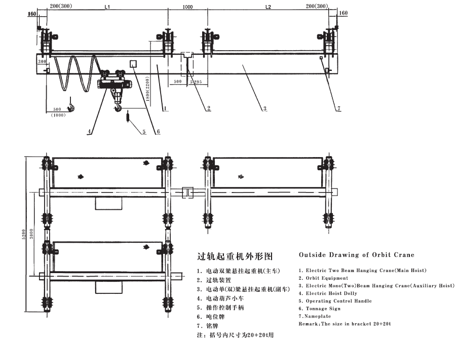 3、   該產(chǎn)品屬于組合設(shè)備,由電動(dòng)葫蘆小車、電動(dòng)雙梁懸掛起重機(jī)(主車)、(手)電動(dòng)單(雙)梁懸掛起重機(jī)(副車)和過(guò)軌裝置組成。
