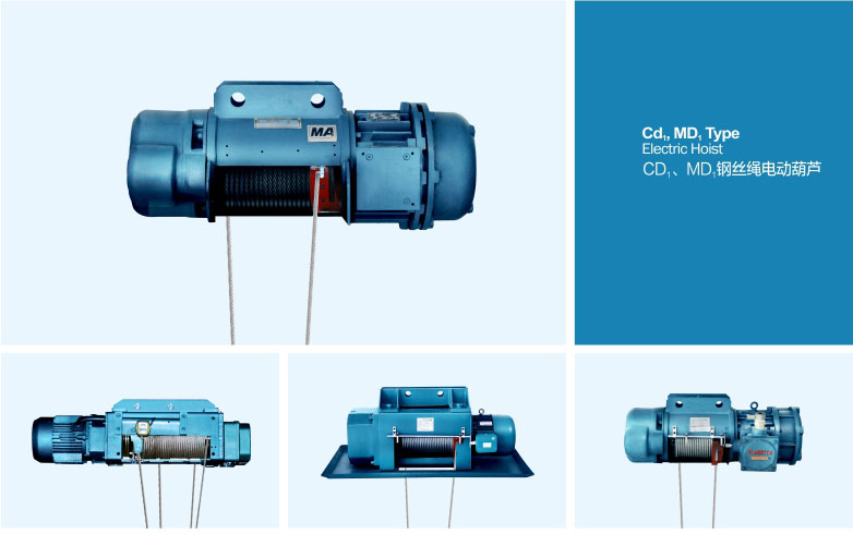 1、   CD1型、MD1型鋼絲繩電動葫蘆是一種輕小型起重設(shè)備,它可以安裝在葫蘆單梁、橋式起重機(jī)、門式起重機(jī)、懸臂起重機(jī)上。稍加改動,還可作卷揚(yáng)用。