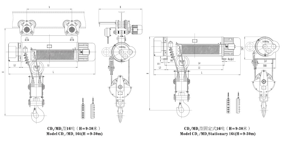 3、   CD1型電動葫蘆的起升速度為常速,可滿足一般使用要求;MD1型電動葫蘆具有兩種起升速度——常速和慢速。